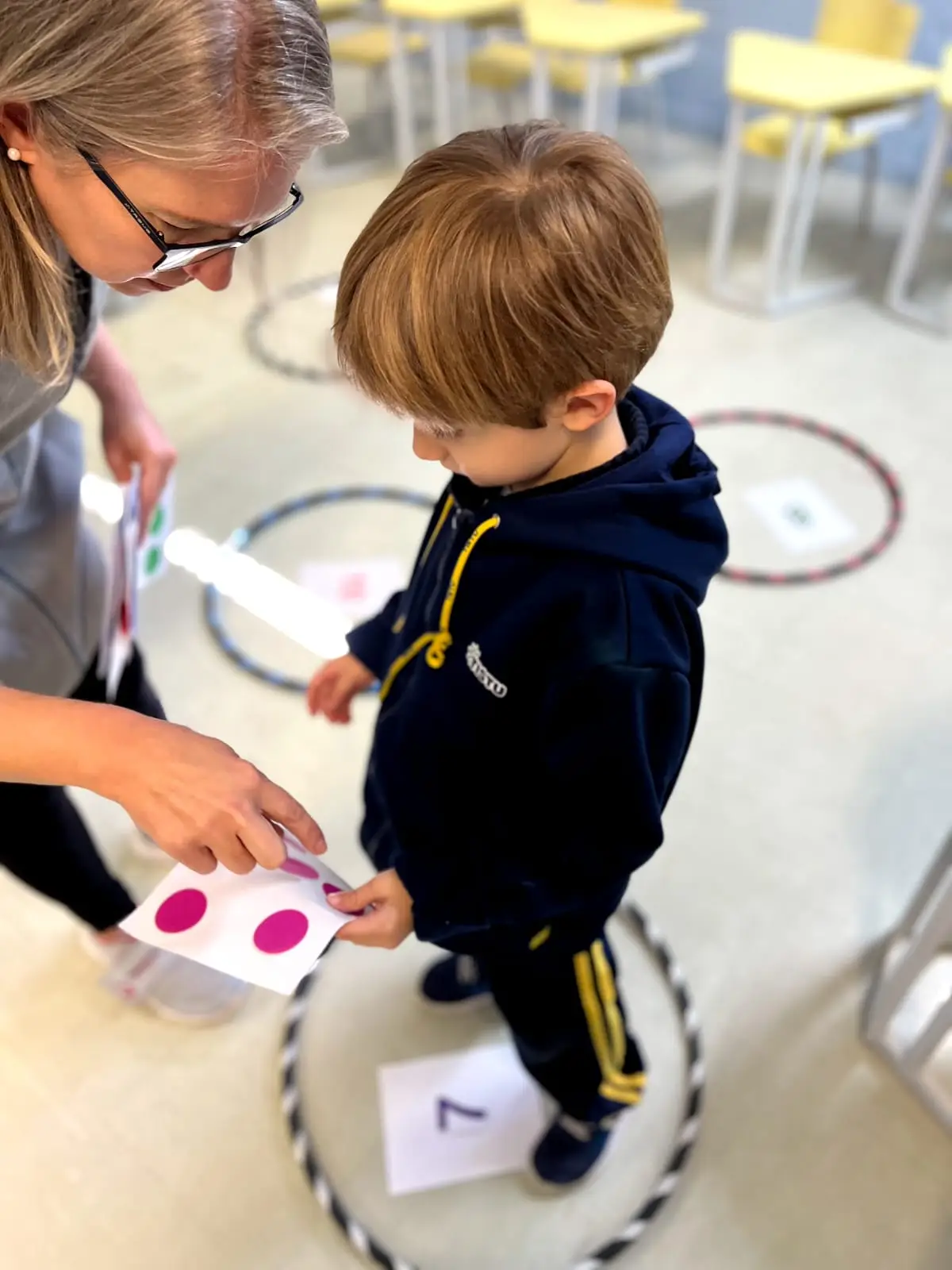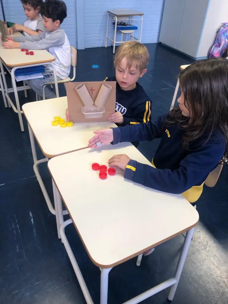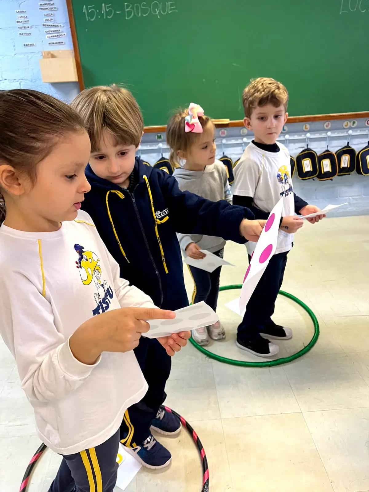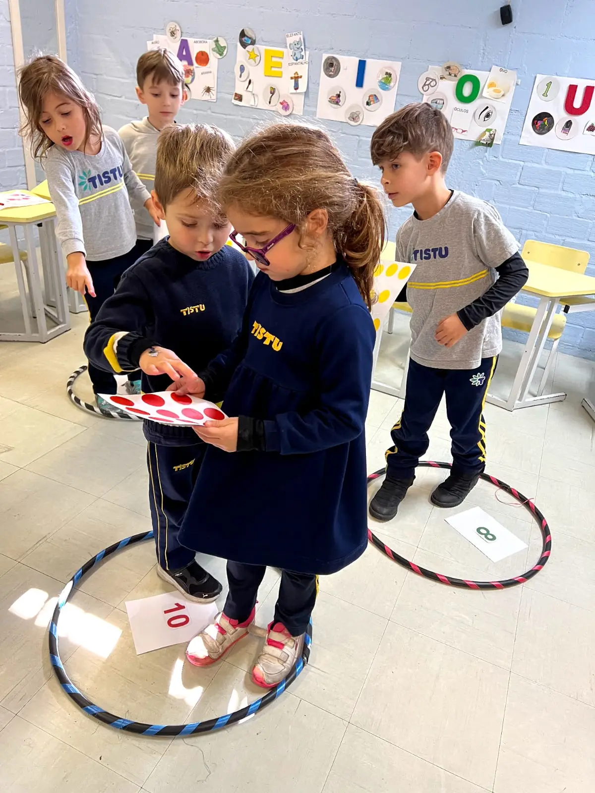 O desenvolvimento do senso numérico também passa pelos sentidos. Em atividades que envolvem cores, formas, quantidades e materiais diversos – de tampinhas a bambolês e cartões de papelão –, as crianças vão construindo o raciocínio que forma a base para o aprendizado da lógica e matemática. Aliás, essas são disciplinas cujo domínio parte sempre do concreto também no ensino fundamental: jogos, peças e materiais que ensinam a pensar e a calcular são recursos indispensáveis no Tistu.