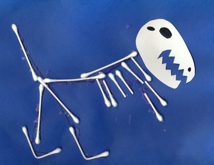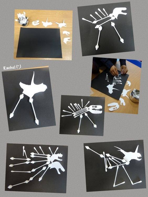 - Monte com a criança o dino com os cotonetes, lembrando que você pode cortá-lo em diversos tamanhos, de acordo com o tamanho do osso.