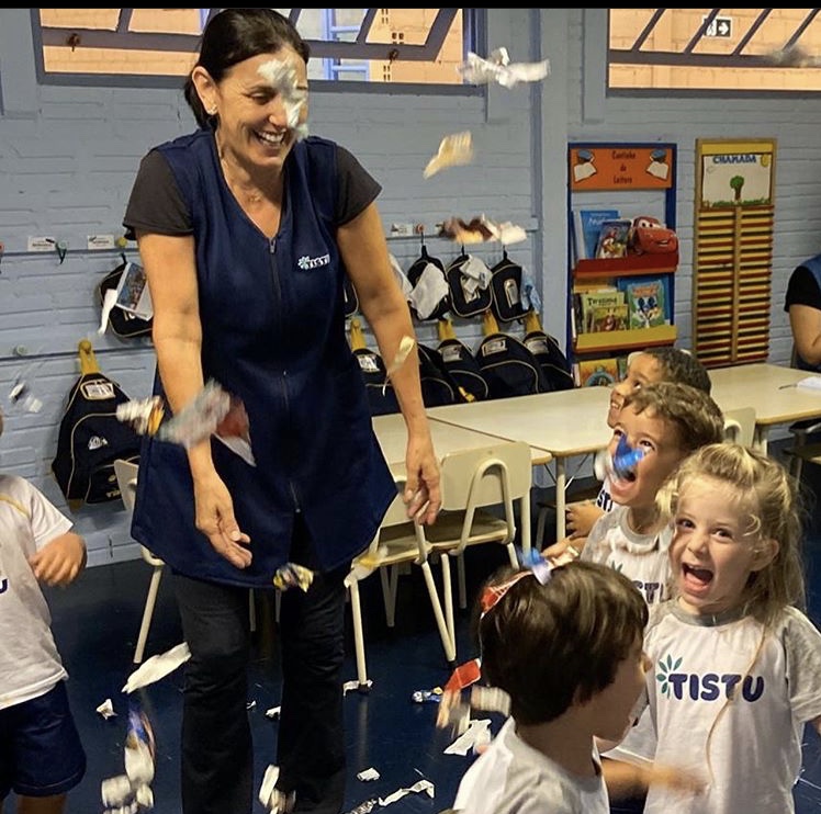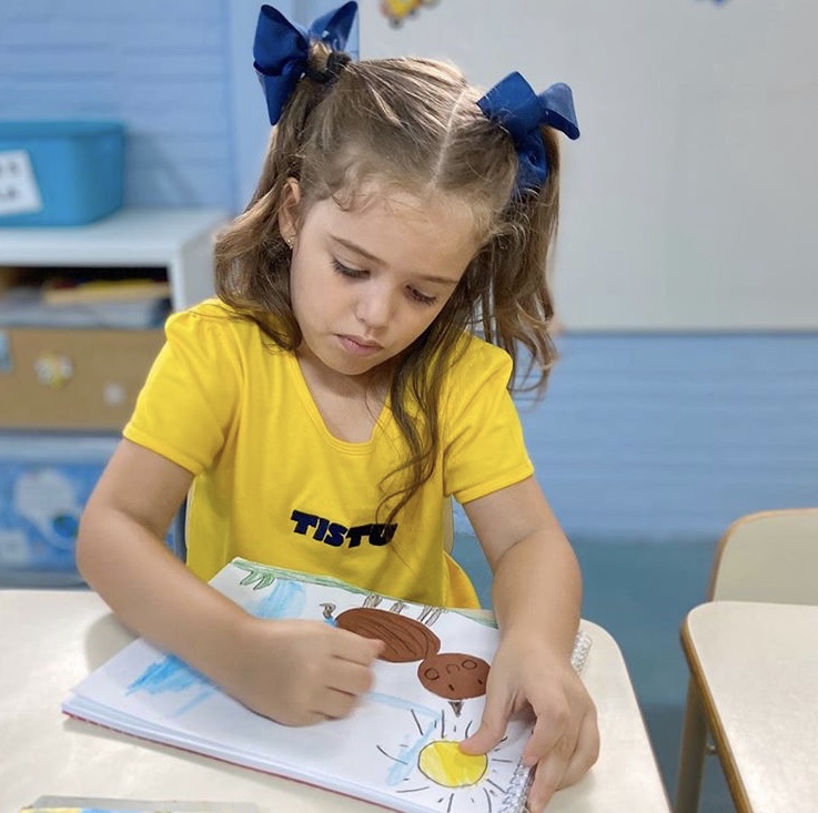 No Tistu 2, todo o conhecimento e os símbolos que são ensinados partem de interações, envolvendo o corpo, as histórias e as descobertas. Foi assim desde o primeiro dia de aula: recortes, formas, cores, atividade em grupo e exploração de diferentes materiais. Na sequência, as crianças serão levadas pelos persongens da turma do Tistu a novos universos, que se transformarão em criativos projetos temáticos.