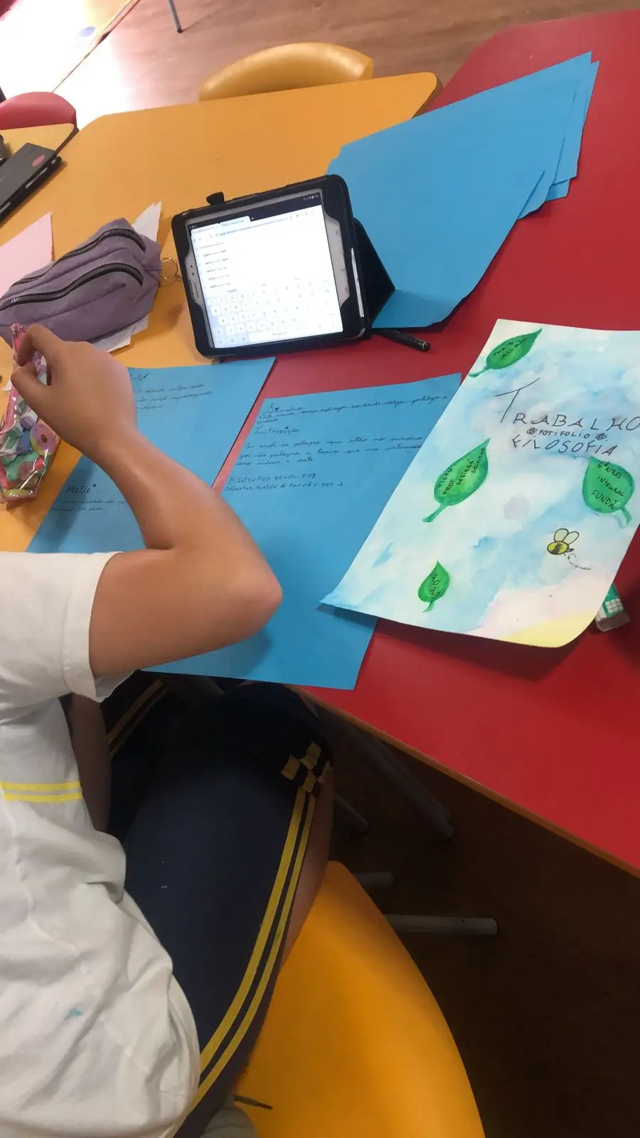 Com criatividade e autonomia, em uma das atividades eles precisam montar portfólios com definições dos conceitos escolhidos segundo nomes como Aristóteles, Platão, Kant e Sartre.