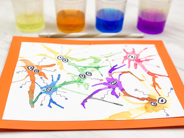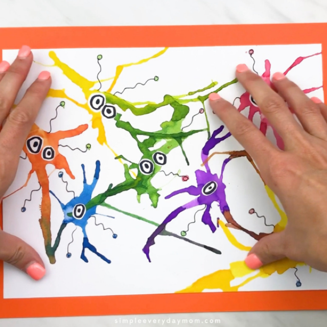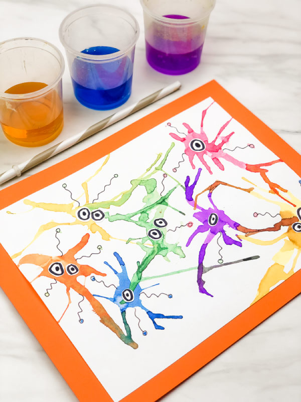- Com o canudo, peça à criança que assopre a tinta para todos os lados, fazendo diferentes formas.