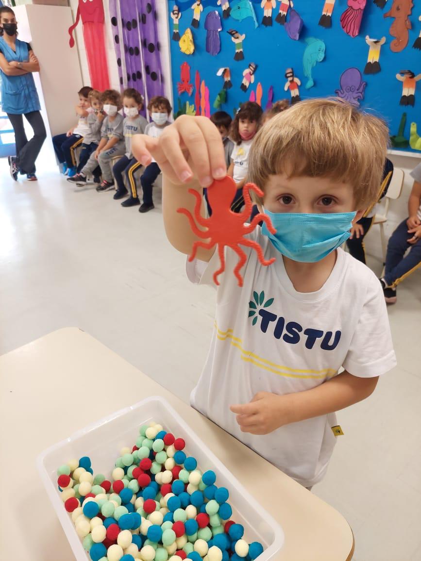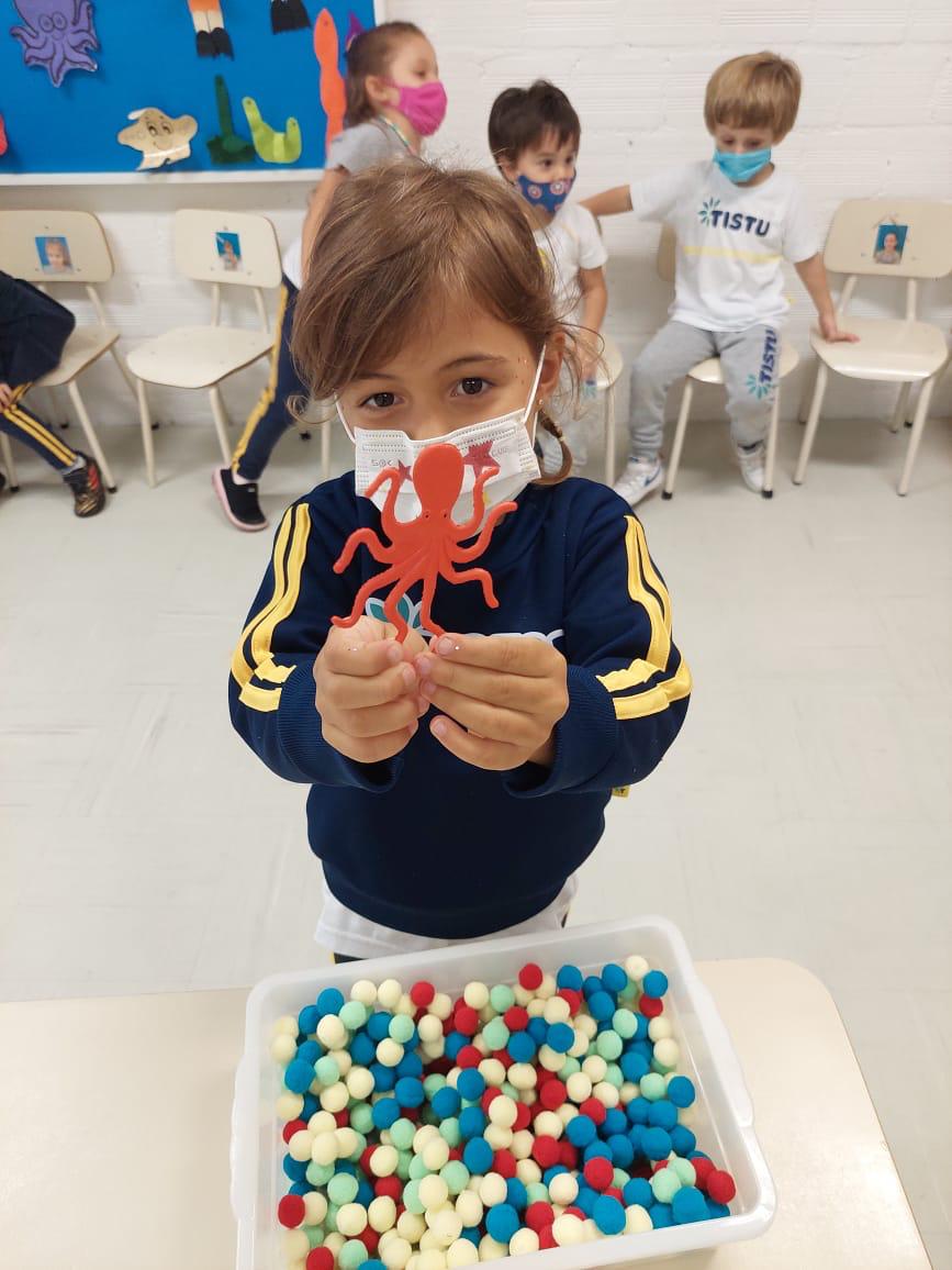 Entre os alunos do Jardim 3, foram os animais marinhos que guiaram a aprendizagem no primeiro trimestre. Foram aprendidas as características e peculiaridades de animais como tartaruga marinha, tubarão, caranguejo, cavalo-marinho, polvo e baleia.