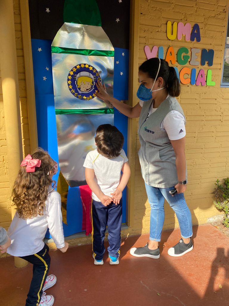 Dentro desta Unidade, chamada Uma Viagem Espacial, elas exploraram assuntos como dia e a noite e as estações do ano em trabalhos super dinâmicos e divertidos, como manipulação de fotos com elementos do tema. Dento da proposta da escola de trabalhar os conhecimentos de forma integrada e interdisciplinar, aprenderam a classificar, seriar e a reconhecer letras e números, sempre a partir das aventuras de Tistu e sua turminha do bem.